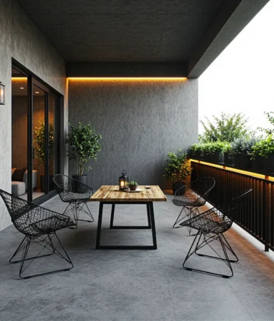 Balkon w Stylu Industrialnym: Jak Stworzyć Wyjątkową Przestrzeń z Oświetleniem LED w Odcieniach Czerni i Szarości?