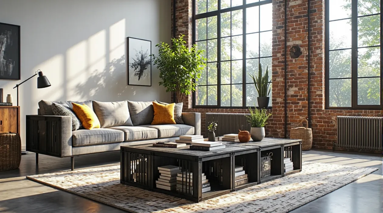 To jeden z najpopularniejszych projektów, który łączy w sobie surowość metalu z mobilnością. Stolik kawowy wykonany z dużej, solidnej skrzyni metalowej (np. po częściach maszynowych) to centralny punkt każdego salonu w stylu loft.