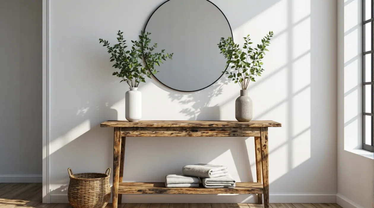 Masz wąski przedpokój lub pustą przestrzeń za kanapą w salonie? Stary stół można w genialny sposób zaadaptować do takich miejsc. Przetnij go wzdłuż na pół. Jedną z połówek (tę z dwiema nogami) przymocuj do ściany. W ten sposób powstanie wąska, stabilna konsola, która nie zajmuje wiele miejsca. To idealna półka na klucze, korespondencję, czy dekoracyjny wazon. Taka konsola wygląda niezwykle stylowo i jest dowodem na to, że nawet z połowy mebla można stworzyć coś w pełni funkcjonalnego i pięknego.
