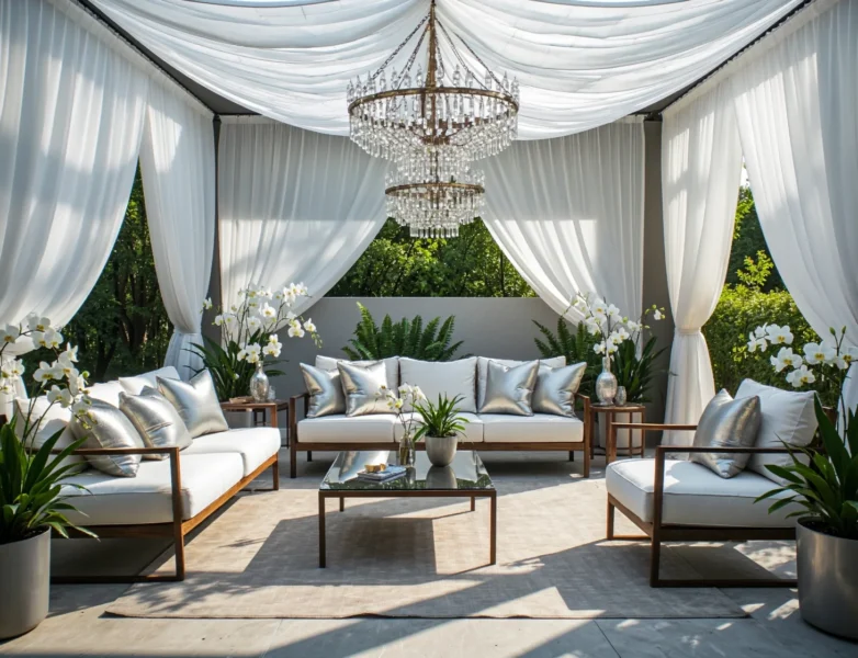 10 inspiracji na urządzenie tarasu w stylu glamour z kryształowymi akcentami