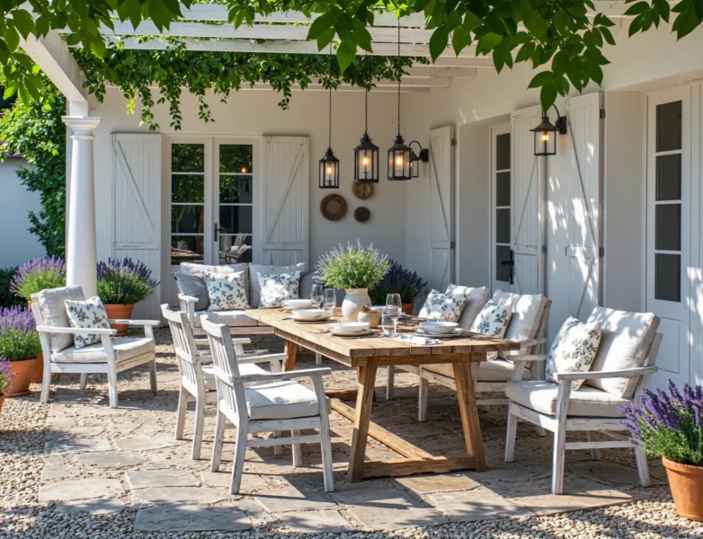 Jak urządzić taras w stylu prowansalskim z lampami LED w kształcie latarenek?