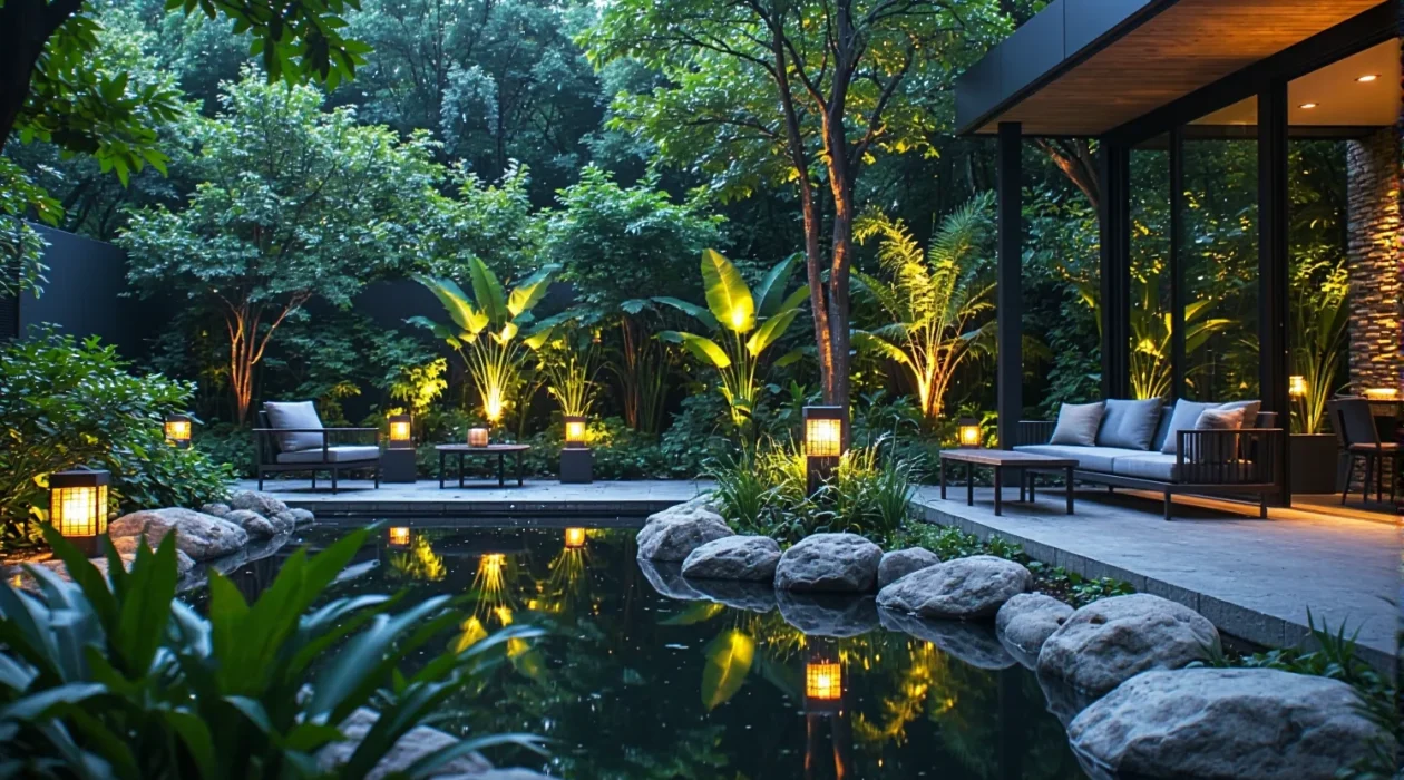 Magia nocy w tropikalnym ogrodzie: Jakie lampy wybrać nad oczko wodne?