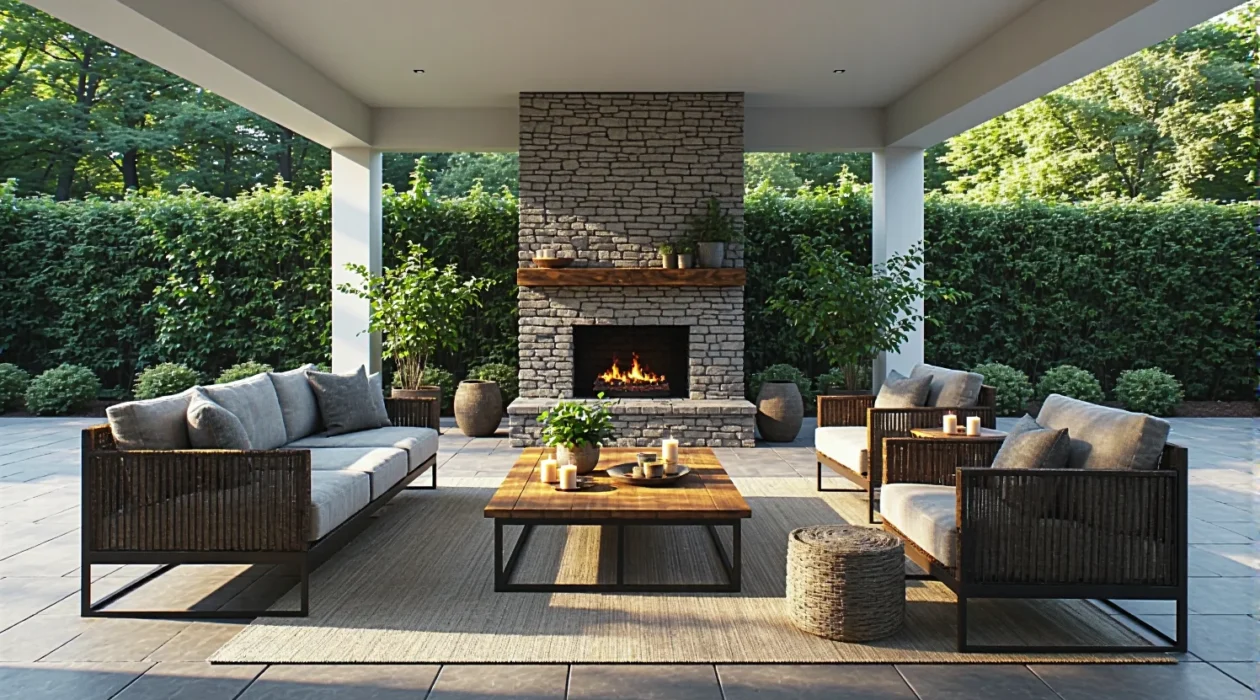 Jakie meble ogrodowe najlepiej pasują do przestrzeni z kominkiem zewnętrznym?